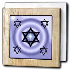 STAR OF DAVID - PURPLE RING Tile Napkin Holder is measuring 6w x 6h x 4d. Made from high quality solid maple wood with satin finish and two 4.25 commercial grade mirror gloss ceramic tiles. Holds napkins, mail, letters or files. In addition, customized engraving, on the face of the item, is available on request.