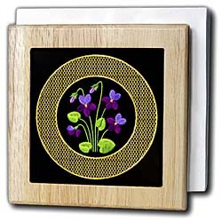 Violets Gold Weave Ring Tile Napkin Holder is measuring 6w x 6h x 4d. Made from high quality solid maple wood with satin finish and two 4.25 commercial grade mirror gloss ceramic tiles. Holds napkins, mail, letters or files. In addition, customized engraving, on the face of the item, is available on request.