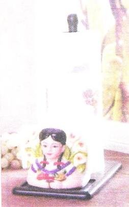 This paper towel holder featers the adorable calla lily chef. It has a wooden holder thats 1 foot tall so it fits any and every size paper towel roll! If that weren't enough, it also comes with a ceramic chef napkin holder thats mounted on the same wooden platform. Very Convinient to store all of your paper supplies!