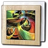 Abstract Colorful Rings - multicolored graphic design of intersecting rings Tile Napkin Holder is measuring 6w x 6h x 4d. Made from high quality solid maple wood with satin finish and two 4.25 commercial grade mirror gloss ceramic tiles. Holds napkins, mail, letters or files. In addition, customized engraving, on the face of the item, is available on request.